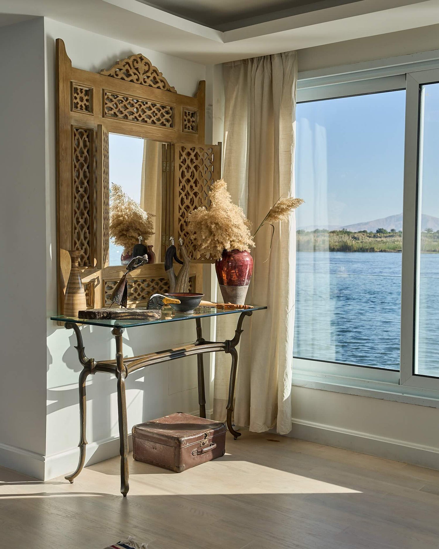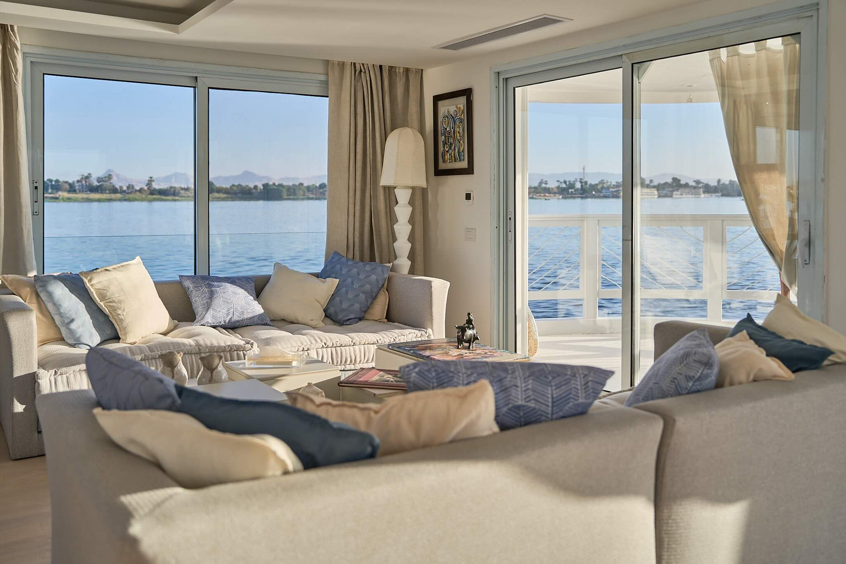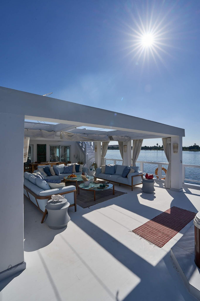 Inspired by the beauty of Nubian architecture, it blends timeless river craft with a modern, understated elegance. Every detail is bespoke, from the hand-designed furniture to the curated art, with spaces shaped to let light and the Nile flow through.
