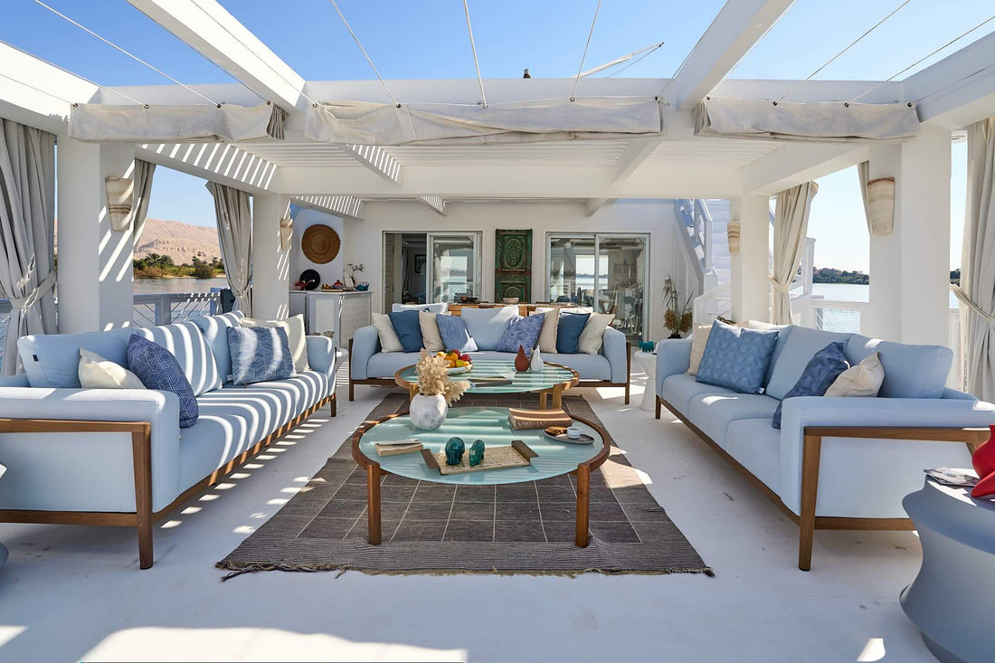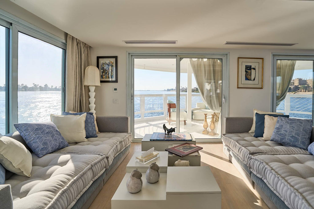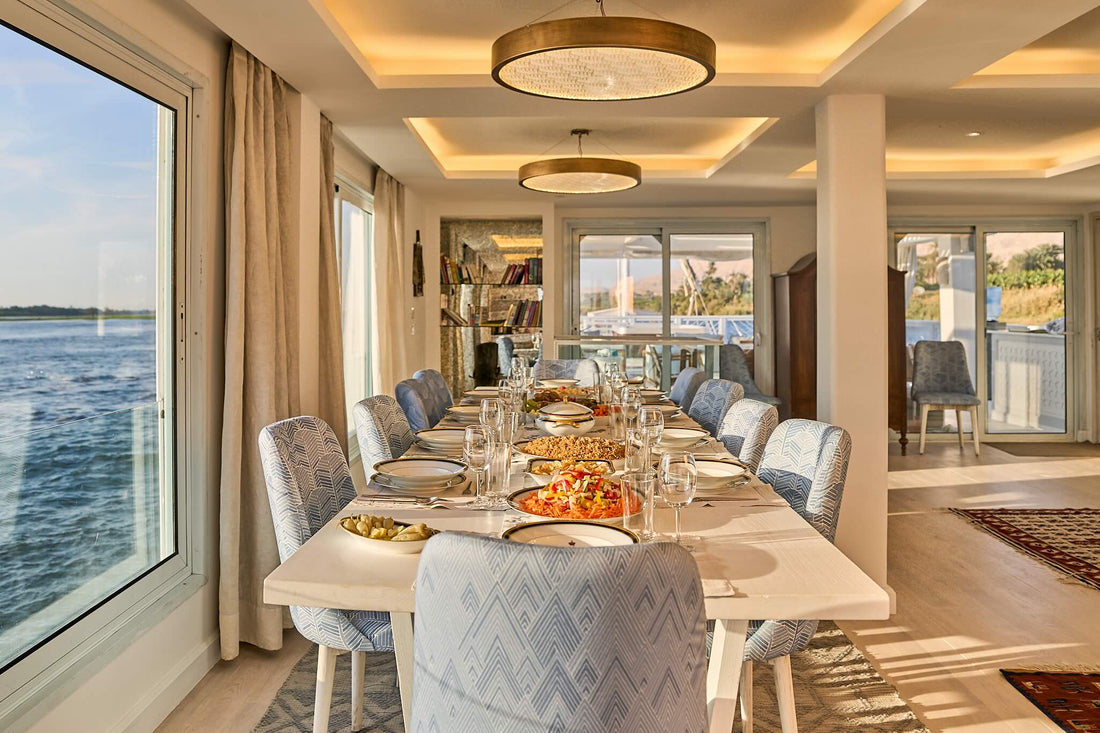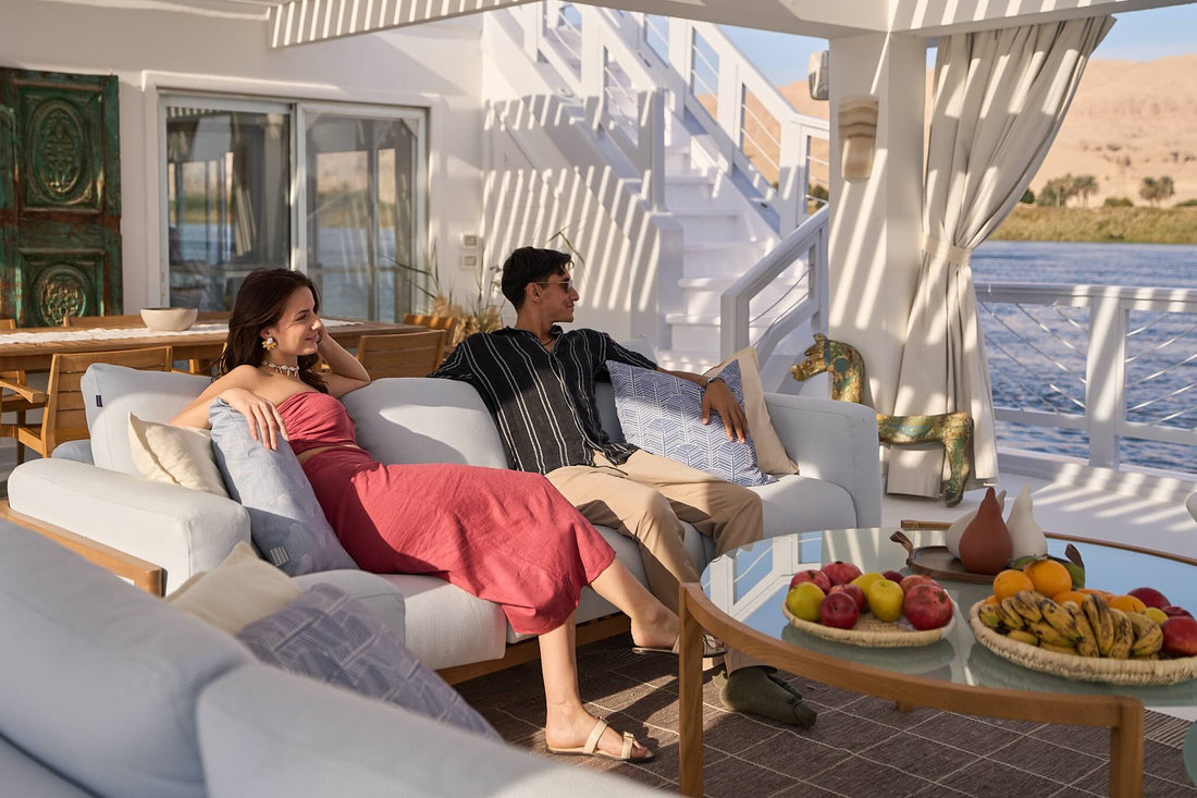 Light-filled and quietly elegant, the Palm Twin Cabins are designed to feel like a gentle retreat on the river. Large windows frame the passing palms, villages, and temples, allowing the Nile to become part of the room itself. Soft tones, natural textures, and bespoke details create a calm, home-like atmosphere, while generous storage and thoughtful layout ensure effortless comfort.